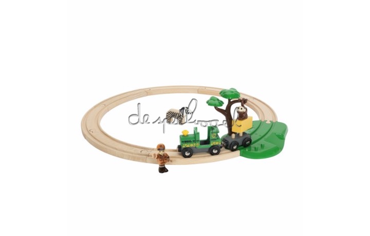 Ga mee op een safari treinavontuur en zoek de zebra in de savanne! Kijk uit voor het ondeugende aapje dat graag het magnetische fruit uit de wagons steelt wanneer je voorbijrijdt! Inclusief een safari ranger-figuur en locomotief om de goederen te bezorgen.