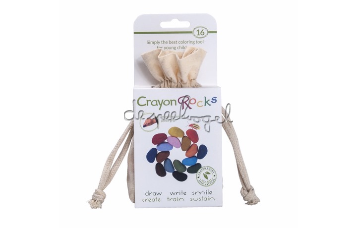 Crayon rocks, ecru katoenen zakje met 16 kleuren