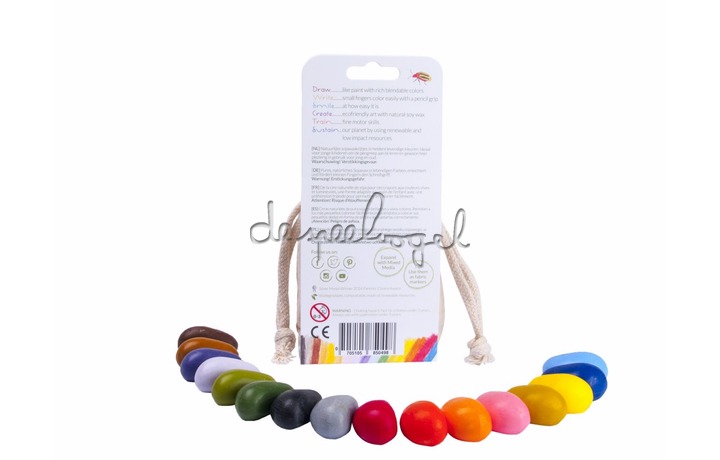 Deze natuurlijke sojawax krijtjes zijn gemaakt in de VS van lokaal geteelde soja en gekleurd met natuurlijke mineralen pigmenten.
