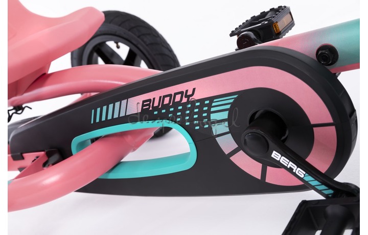 Laat je kind ontdekken, genieten en lachen op de BERG Buddy Lua. De zwarte banden en velgen, gecombineerd met roze, mint en toffe graphics maken dat je kind overal de aandacht trekt. Het scheuren op deze knallende Buddy gaat makkelijk, soepel en snel. Je kan vooruit rijden, remmen, achteruit rijden en dat allemaal zonder dat het veel moeite kost.