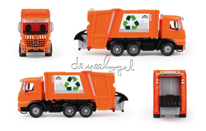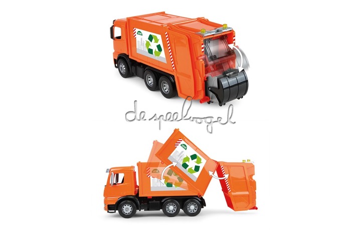 Het 52 cm lange voertuig in robuuste uitvoering is geschikt om binnen en buiten mee te spelen. De vuilniswagen in een modern en gedetailleerd design is voorzien van 6 mm verzinkte stalen assen en biedt geweldige speelfuncties. Zo heeft hij een vergrendelbare kantelfunctie voor het lossen van het voertuig. De grote en kleine vuilnisbakken kunnen worden vastgemaakt en geleegd om te worden geladen.