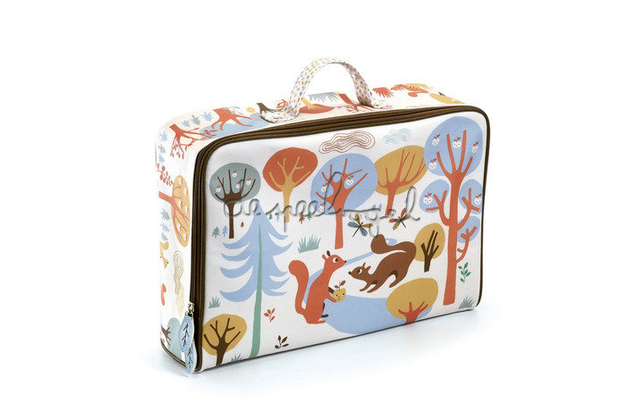 Retro koffertje uit gecoat katoen met vrolijke print. Ideaal voor weekendjes bij vriendjes of grootouders!