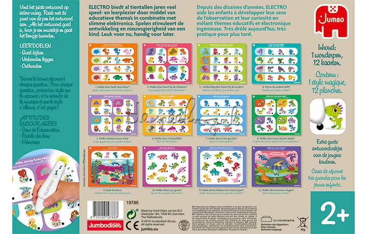 Educatief vraag- en antwoordspel speciaal ontworpen voor kinderen van 2 jaar en ouder. 12 Grote kaarten met tekeningen & foto’s. Ontdek kleuren, vormen, silhouetten en nog veel meer! De antwoordvakjes zijn extra groot voor de jongere kinderen.