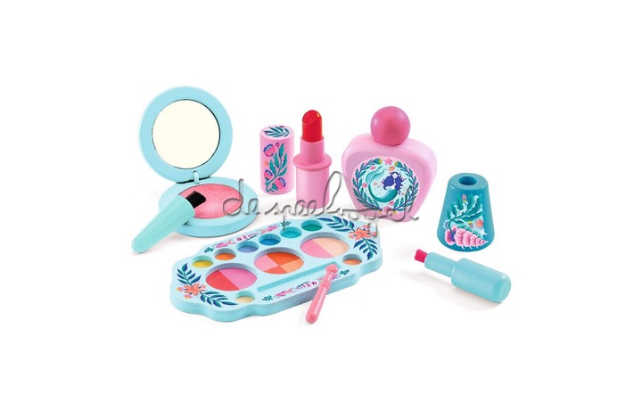 Een prachtig geïllustreerde make-updoos met als thema de zee en zeemeerminnen, met alle benodigdheden voor kinderen die zich net als volwassenen op willen maken. Realistische accessoires. Een imitatiespel voor kinderen om zich te amuseren en te doen alsof ze groot zijn!