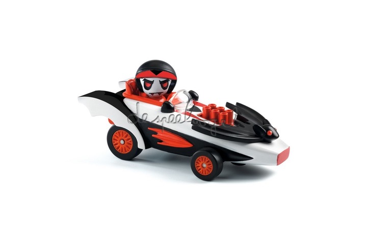 met zijn bleke kleur en vampiertanden gaat Speed bat 's nachts op pad om zijn tegenstanders te vinden voor zijn volgende nachtelijke razendsnelle races! Metalen raceauto met wielophanging een speciale coureur voor elke auto De plastic onderdelen geven de auto een bijzondere look. Een wereld van waanzinnige auto's met elk een bestuurder