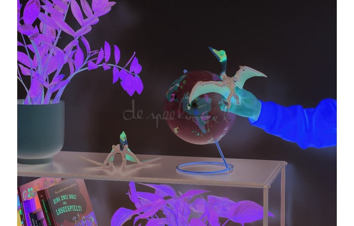Op het land ziet de Quetzalcoatlus er niet erg elegant uit. Maar nog meer in de lucht! Als hij eenmaal met moeite is opgestegen, kan de reuzenpterosauriër geruisloos door de lucht varen. Alleen moet hij af en toe met zijn beweegbare vleugels klapperen om op koers te blijven. Hij blijft enkele uren achter elkaar in de lucht. Waar denk je dat hij zich uiteindelijk zal vestigen?