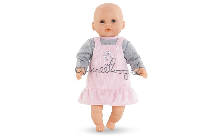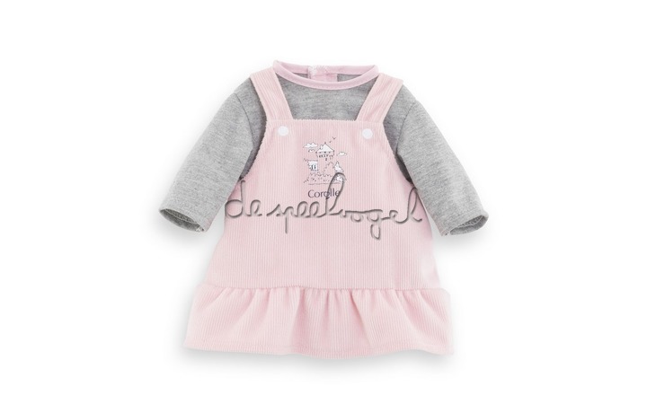 Tijdloos, de Bords de Loire Jurk in grijs en roze zal de kleine 30cm baby's van mijn eerste Corolle pop verrukken.