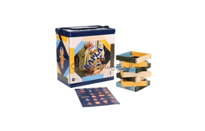 De KAPLA 120 dozen bevatten 120 plankjes, waarvan 30 gekleurd. Kleine, kleurrijke formaten!
