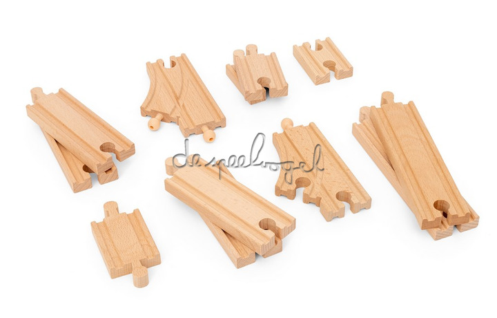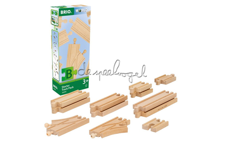 Breid je BRIO World Starterset trein uit met de 36099 Set rails voor beginners. Dit uitbreidingspakket bevat een aantal houten spoorwegstukken waarmee je vijf extra trajecten kunt ontwerpen voor de 36079 Starterset reistrein (apart verkrijgbaar). Combineer rechte rails van verschillende lengte, wissels en verbindingsstukken en leg de voorgestelde banen of bedenk je eigen ontwerp.