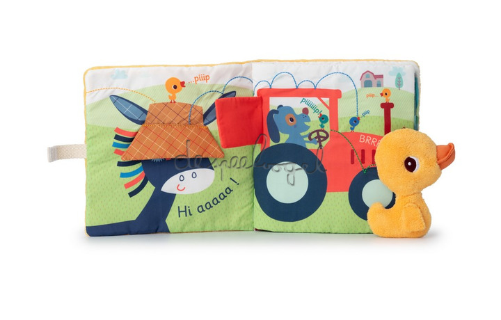 Volg Papa Eend door de boerderij om zijn verspreide kuikens terug te vinden. Elke pagina onthult een nieuw kuikentje van kleur, een kleurrijk avontuur voor de allerkleinsten. Kinderen zullen leren tellen en kleuren terwijl ze dit spannende avontuur volgen. Een vrolijke ontknoping wacht op je: een bijeenkomst rond heerlijke pannenkoeken. Deel magische momenten met je familie met dit interactieve stoffen boek.