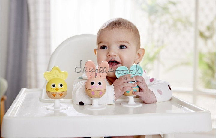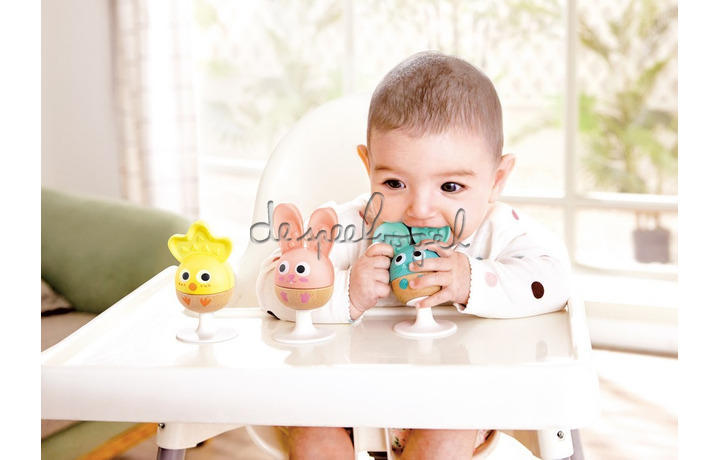 Dankzij de handige zuignappen blijven de rammelaars stevig vastzitten op gladde oppervlakken, zoals een kinderstoel of tafel. Dit maakt het perfect speelgoed voor tijdens het eten of onderweg. De rammelaars zijn gemaakt van FSC-hout en BPA-vrije siliconen, waardoor ze veilig en duurzaam zijn voor kleine handjes en mondjes.
