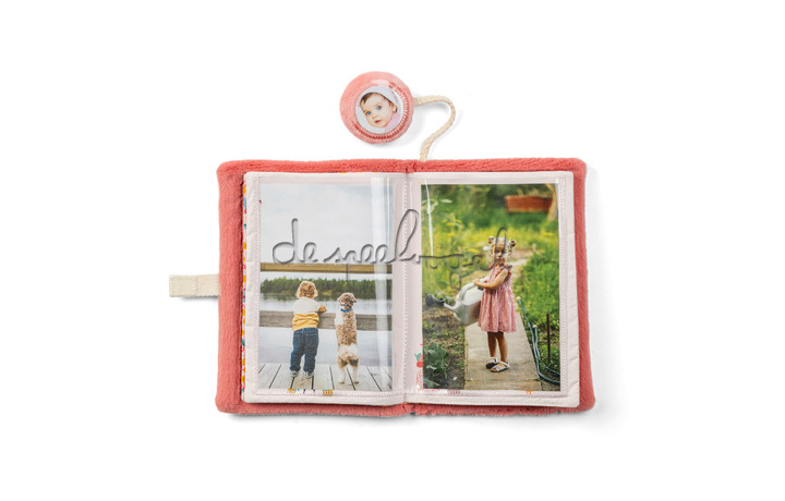 Met dit zachte stoffen fotoalbum heeft uw kind altijd foto's van zijn of haar dierbaren bij de hand. Het is ontworpen om vanaf 9 maanden te gebruiken. Het fotoalbum Jeanne the Cat heeft 10 vakjes waar u uw mooiste foto's goed beschermd in kunt bewaren. Elke pagina in het album is versierd met mooie illustraties, geïnspireerd op de wereld van onze kleine tuinkat en zijn vrienden. Zodra u uw foto's hebt toegevoegd, worden ze benadrukt door de verschillende patronen en kleuren van de decors. Wat is het allerleukste aan dit babyfotoalbum? Een speciale bladwijzer met een muisje: op de achterkant kunt u een foto van uw kind erin doen om zijn of haar album te personaliseren. De ronde vorm is ideaal voor de allerkleinsten, die ermee kunnen knuffelen of er net als volwassenen mee kunnen markeren. Dankzij het verticale portretformaat kunt u het fotoalbum Lilliputiens overal mee naartoe nemen om met plezier en nostalgie door uw mooiste foto's te bladeren. Geef uw kind een eigen klein fotoalbum van stof, zodat hij/zij overal foto's van zijn/haar dierbaren mee kan nemen. Hij kan dan plezier beleven aan het herkennen van bekende gezichten of het ophalen van dierbare herinneringen. Net als een leerboek is het een ideaal visueel hulpmiddel om uw kleintje te vermaken tijdens een lange reis of wachttijd. Ook op de crèche, of wanneer we oma erg missen, vinden we het leuk om een foto van haar te zoeken in haar eigen album. Zo wordt de scheiding nog mooier. Naarmate uw kind groeit, kan hij of zij het roze fotoalbum gebruiken om zelf gemaakte foto's in te bewaren!