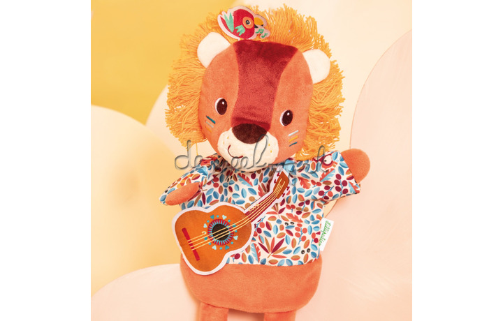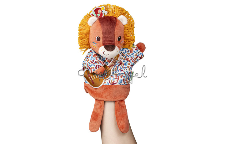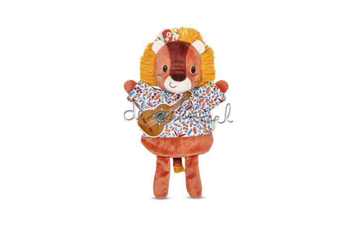 Van de geboorte tot de leeftijd van de eerste verhalen, met deze leeuwenpop kun je je verhalen tot leven brengen, maar ook kinderliedjes nabootsen of interactie hebben met je kleintje: het is soms gemakkelijker om je favoriete dier in vertrouwen te nemen! Met zijn gitaar begeleidt onze leeuwenmuzikant verhalen en kinderliedjes in liedjes. Hij heeft altijd een kleine melodie in gedachten en zingt voor zijn junglevrienden wanneer hij de kans krijgt. Maar wie verbergt zich in zijn manen? Het is zijn vriend de papegaai, die hem vergezelt om de achtergrondzang te doen! Reik door de pluche pop en laat je fantasie de vrije loop. Naarmate uw kind opgroeit, is het aan hem om het speelgoed te gebruiken om verhalen te verzinnen of boodschappen over te brengen terwijl het de motoriek ontwikkelt. Zeer zacht, deze handpop is ook zeer aangenaam om mee te knuffelen en is gemaakt van gerecycled polyester. Met zijn prachtige manen en junglemotieven zal onze kleine Jack de aandacht trekken van de kleintjes en de ouderen aan het lachen maken! Het is altijd een goed idee om een pop te gebruiken om de baby te vermaken en met je peuter te communiceren.