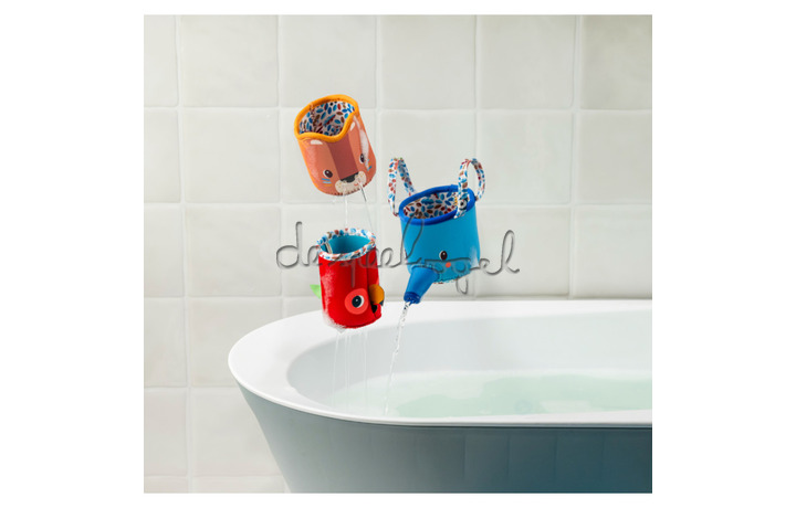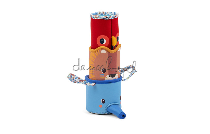 Dit badspeeltje is geschikt voor baby's vanaf 6 maanden en kinderen tot 6 jaar en ouder. Het bestaat uit drie kopjes met verschillende waterstralen, voor extra plezier in bad! Eerst spuit Jack the Lion je nat door zijn snuit, vanuit de opening net onder zijn neus. Dan is de olifant aan de beurt: hij pakt hem vast bij zijn grote, grappige oren, die ook als handvat dienen, en spuit je met zijn slurf nat alsof het een gieter is! Tot slot spuit Gilles de papegaai je op je hoofd, dankzij de openingen die aan de onderkant zitten! Met dit spel blijft de nieuwsgierigheid van uw baby geprikkeld en ontwikkelt u de motoriek van uw peuter! Uw kind zal het geweldig vinden om de bekers in elkaar te zetten en de verschillende waterstralen te ontdekken. Deze praktische bademmerset is gemaakt van neopreen en polyester: hij droogt snel en gemakkelijk. Ze zijn bovendien ingebouwd, voor nog eenvoudiger opbergen. Of het nu gaat om wassen of spelen in het water op een warme dag, dit Lilliputiens-waterspel belooft urenlang speelplezier! Het is ideaal om de coördinatie en motoriek te stimuleren, maar ook om de kleintjes aan te zetten tot ontdekken. Om oudere kinderen te stimuleren om zelfstandiger te worden, kunt u deze badbekers gebruiken om ze af te spoelen voordat u uit het water stapt.