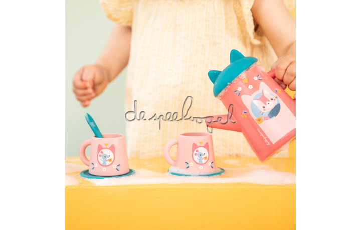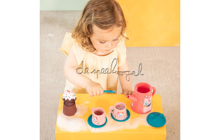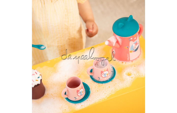 Klaar voor een spetterende snack? Hier is een origineel badspeeltje: een theeservies, ontworpen voor kinderen vanaf 18 maanden.