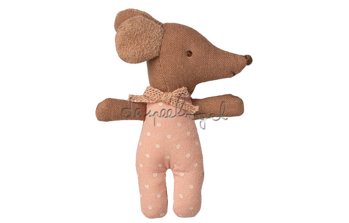 16502400 Maileg Rabbit, Micro - Sand - Rose knitted suit
