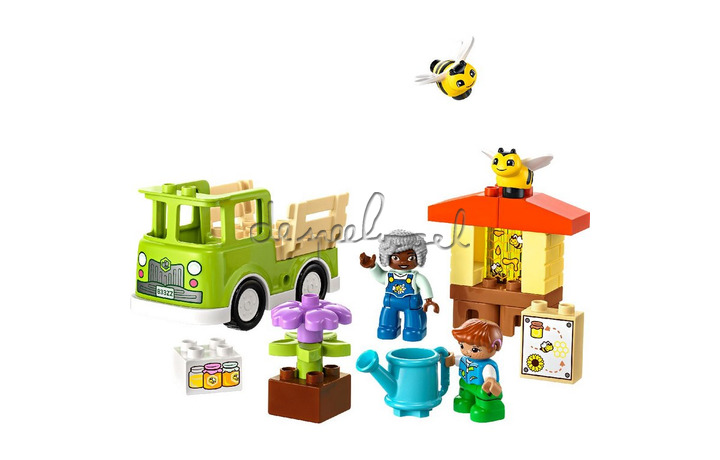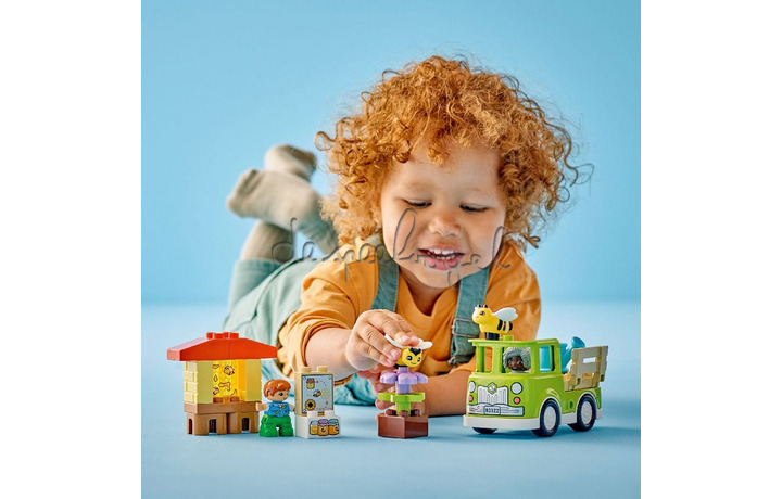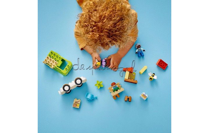 De set bevat ook 2 LEGO DUPLO figuren. Peuters helpen ze de honing te verzamelen, in de speelgoedtruck te laden en ermee naar de markt te rijden.