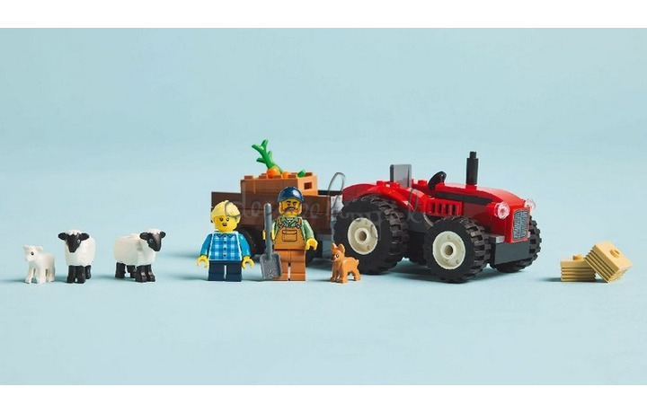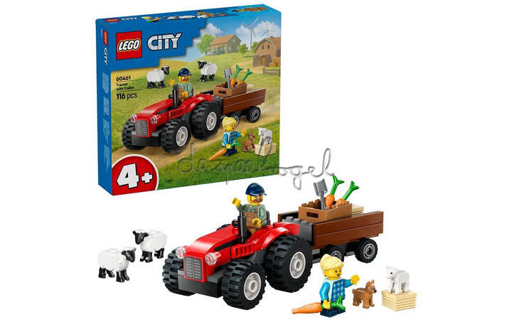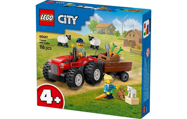 Haal de charme van het platteland in huis met de LEGO City Rode tractor met aanhanger en schapen (60461) boerderijspeelset. Deze set bevat een rode tractor met een afneembare aanhanger, een mand met wortels en 2 hooibalen. Voeg de minifiguren van een boer en dochter toe, samen met 2 schapen, een lammetje en een puppy voor leuke rollenspellen en verhalen.