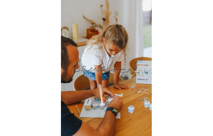 Wat als elektriciteit kinderspel zou worden? Met KIDYELEC ontdekken ze de fascinerende wereld van elektrische circuits door zelf hun eerste montages te bouwen. Ze aansluiten, testen, experimenteren... Deze slimme set is ontworpen om de nieuwsgierigheid te prikkelen en interesse in wetenschap te wekken, en maakt van elke handeling een kleine overwinning. Een eerste concrete en speelse verkenning, waarbij je leert door te zetten — en vooral ook plezier te hebben.