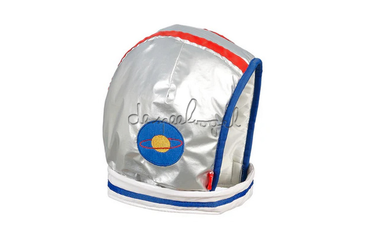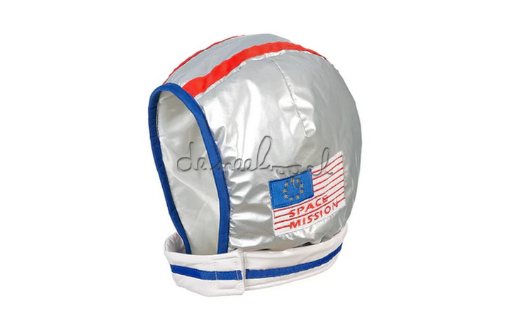 Deze ruimtevaardershelm kan worden geopend met klittenband en is op maat verstelbaar.