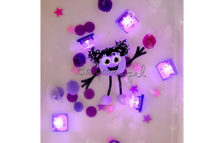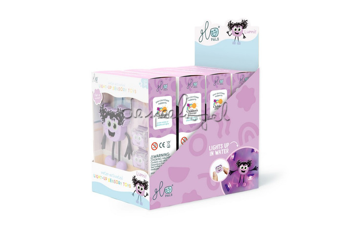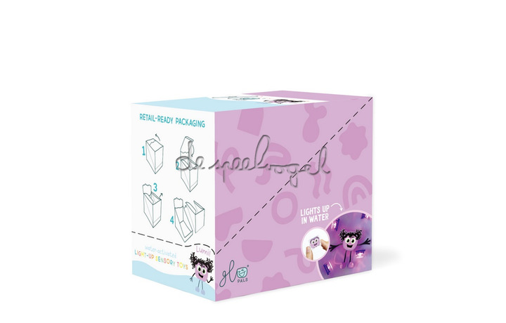 Plaats je Glo Pals® Light-Up Cube in de achterkant van Blair, laat hem in het water vallen en kijk hoe hij oplicht! Met buigzame armen en kleurrijke persoonlijkheden illustreert elke Pal met trots het unieke van elk kind. Blair wordt geleverd met 2 Glo Pals® Light-Up Cubes in de doos.