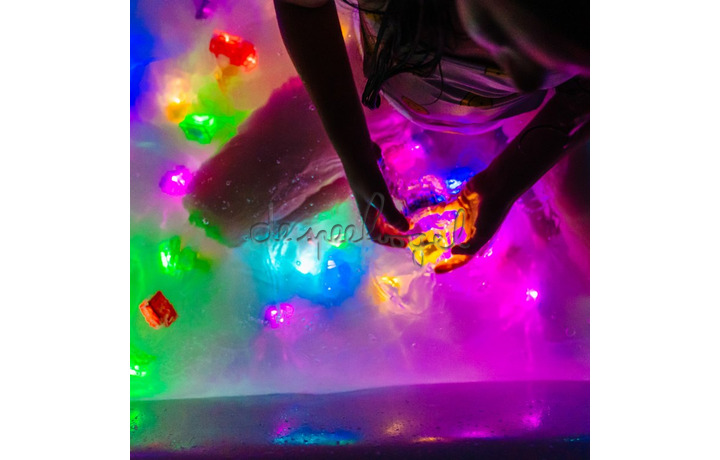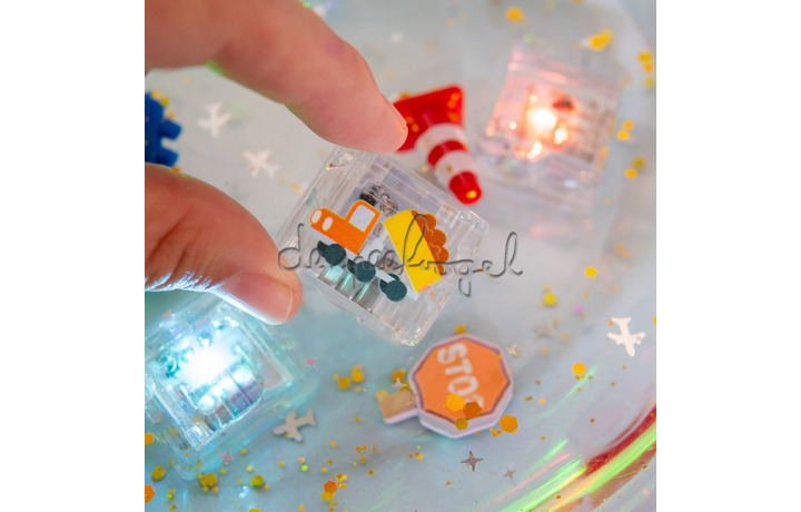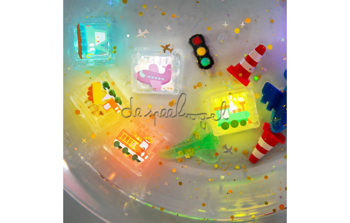 Elk Light-Up Cubes Pack wordt geleverd met 6 unieke thema-ontwerpen. (Zie thema's hieronder!) Laat onze kubussen in het water vallen en zie hoe ze automatisch oplichten en gloeien. Perfect voor zintuiglijk spel of voeg het toe aan je badroutine!