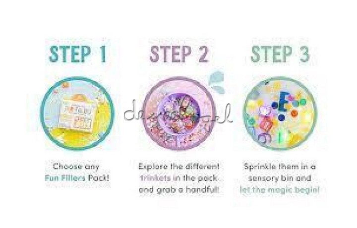 HOE ZORG JE VOOR JE LEUKE VULSTOFFEN: Verwijder alle items uit de sensorische bak of vloeistof na het spelen. Fun Filler-items mogen niet +24 uur in het water blijven liggen.